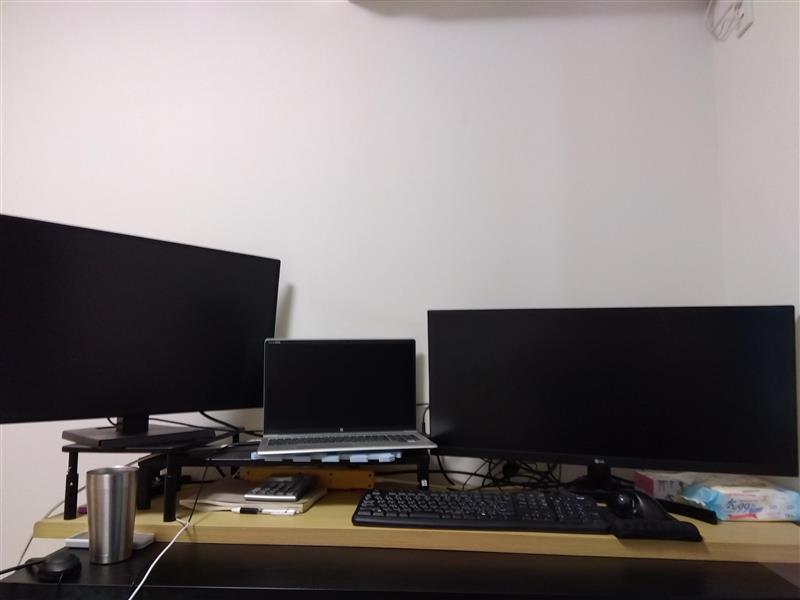 ノートPC含めモニターを3枚設置しています。